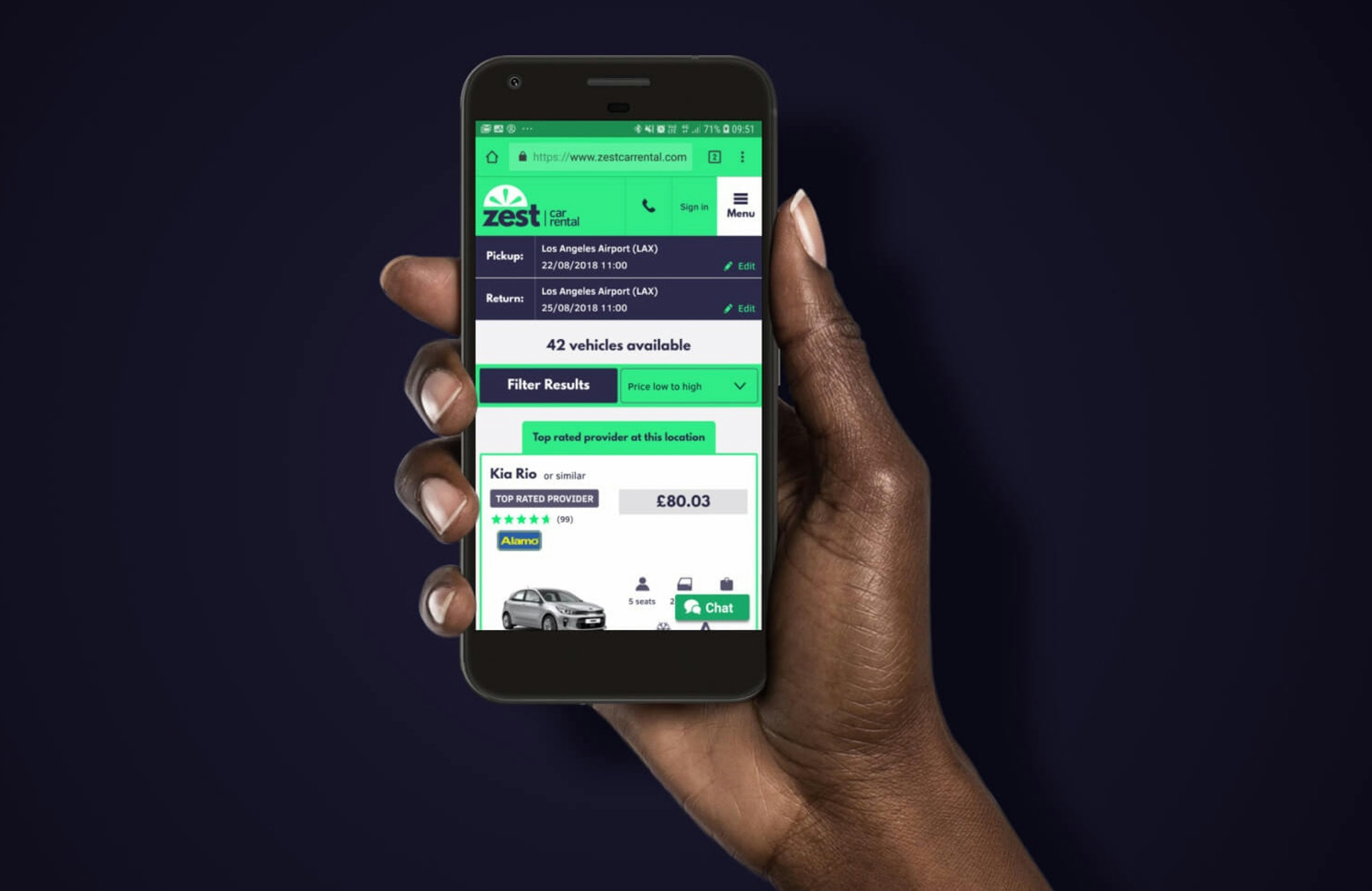 The Zest ethos is to show the user all of the information that other hire companies tend not to shout about. They want their customers to have a great experience, with no nasty surprises when they arrive at the desk to pick up the car.